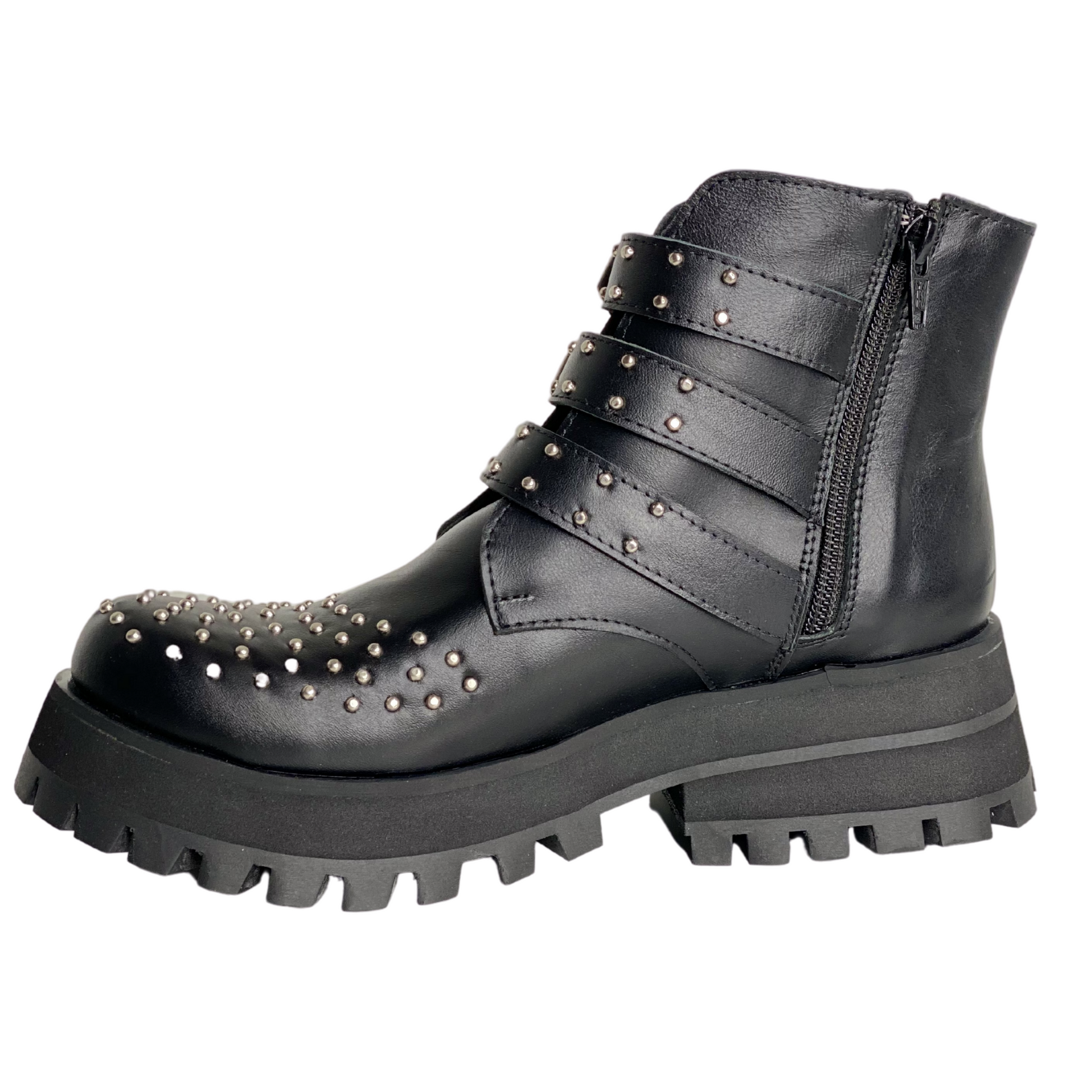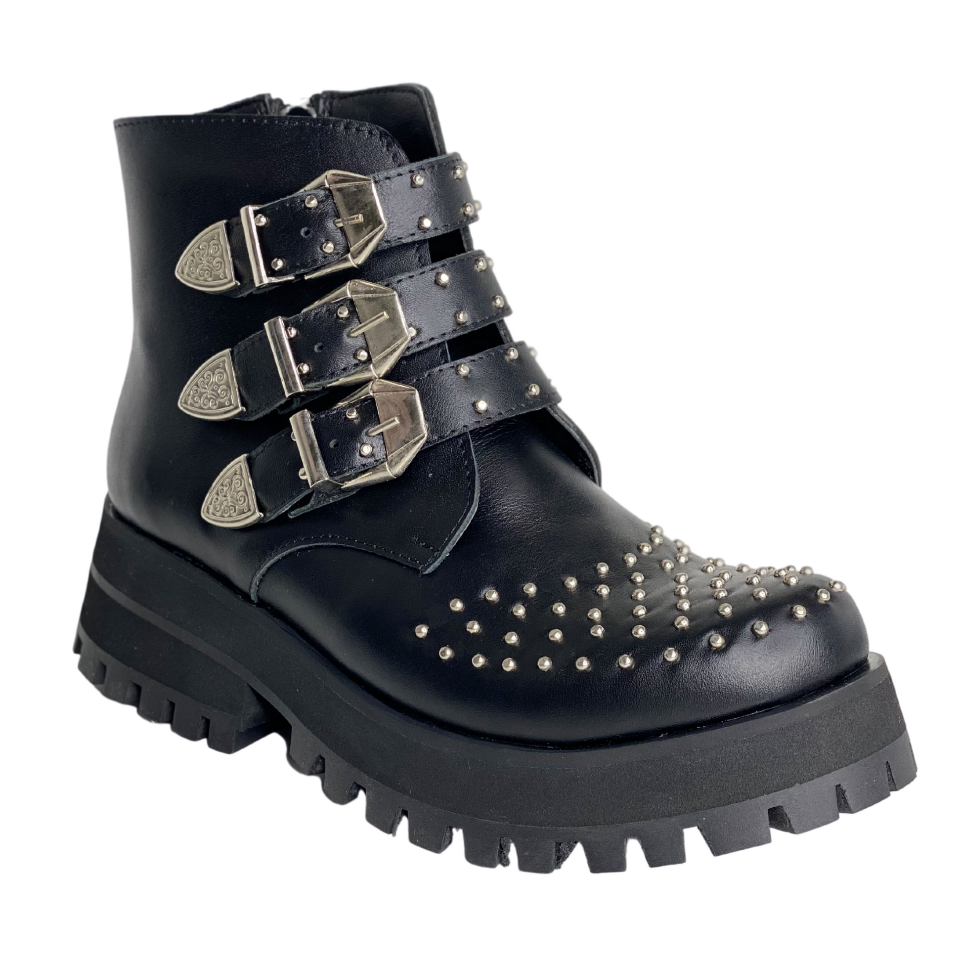 The Bizquit black ankle boots are a bold addition to your year-round wardrobe. Made from high-quality Genuine Leather, they feature three decorative buckles with intricate metal detailing and stud embellishments on the toe. Perfect for winter, spring, summer or fall. The chunky sole provides both style and comfort, making them perfect for a variety of summer activities. Pair them with shorts, skirts, or dresses for an edgy, standout look that combines durability with style.